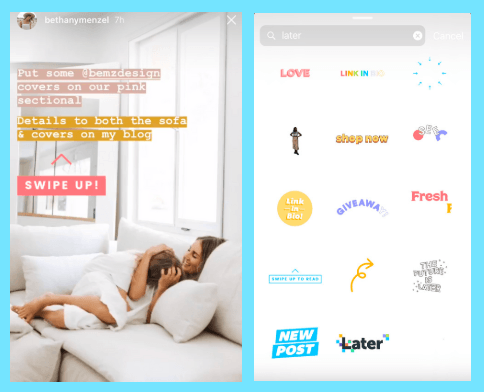 Beyond just being a ton of fun, businesses can also use Instagram Stories GIFs to draw attention to important elements in your Instagram Stories, like a call-to-action or the swipe-up button.