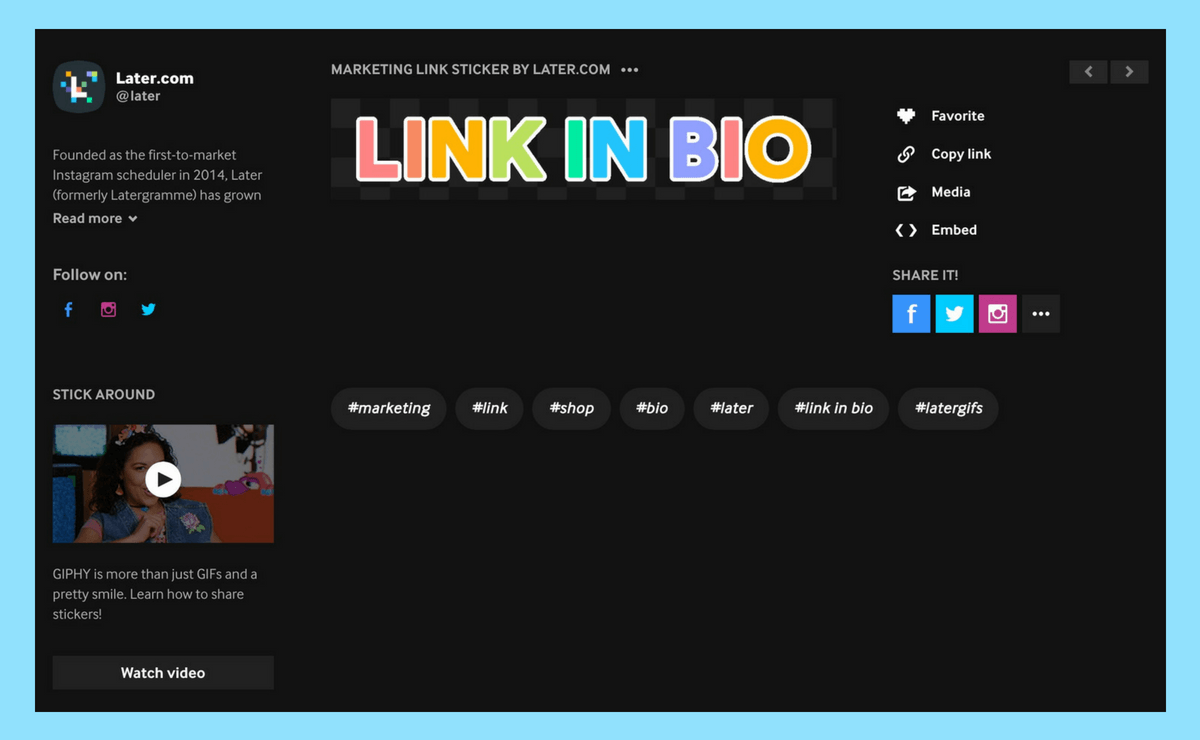 In addition to tagging our GIFs with phrases like "link in bio," we also made sure to tag them with "Later" so our followers can easily find all our GIFs in one place.