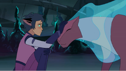 After she and Glimmer become "guests" aboard Horde Prime's flag ship, Catra tries to play any and every card she can to worm her way into Prime's favor, only to be more and more disturbed by him and his mask of manners and civility failing to conceal his narcissistic despotism. Due to her precarious situation and feeling more alone than ever, Catra risks Prime's displeasure by speaking to Glimmer, as she is the only connection she presently has to Etheria. The two actually bond despite past transgressions and Catra begins to experience a fundamental change in herself, that she ultimately helps Glimmer escape and sacrifices herself, knowing she would face Prime's wrath. She saves Glimmer because "it's the one right thing" she's done in her life. After being subjected to Prime's mind purification, Adora heals Catra and cradles her in her arms. On Darla, she joins the group for a dinner of dumplings and gave Entrapta a heartfelt apology to for everything that she did. Entrapta affectionately pats her on the head with her hair, signifying a new friendship. She shows genuine guilt for her terrible deeds and strives to redeem herself. When an apologetic Catra approached Scorpia, she was content with and even enjoyed letting Scorpia hug her, when before she was annoyed by it; showing how much she changed for the better.