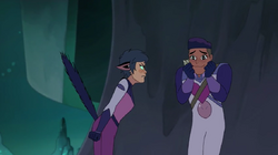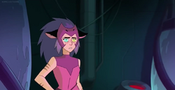 When the Best Friends Squad head to Krytis, It is revealed that Catra does not like being called cute as Bow commented Catra about the ear indents in her helmet and when a piece of magic pollen made her sneeze, and Bow again commented on how cute she is. She responded angrily that she wasn't cute, causing Bow to say she was cute when she was mad as well.
