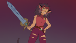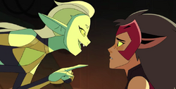 - Catra: "[holding the sword, rubs a finger along its side] Hey, Adora."