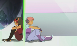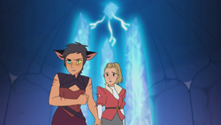 - —Adora and Catra trapped in a First Ones' tower. Promise, minute 4:30